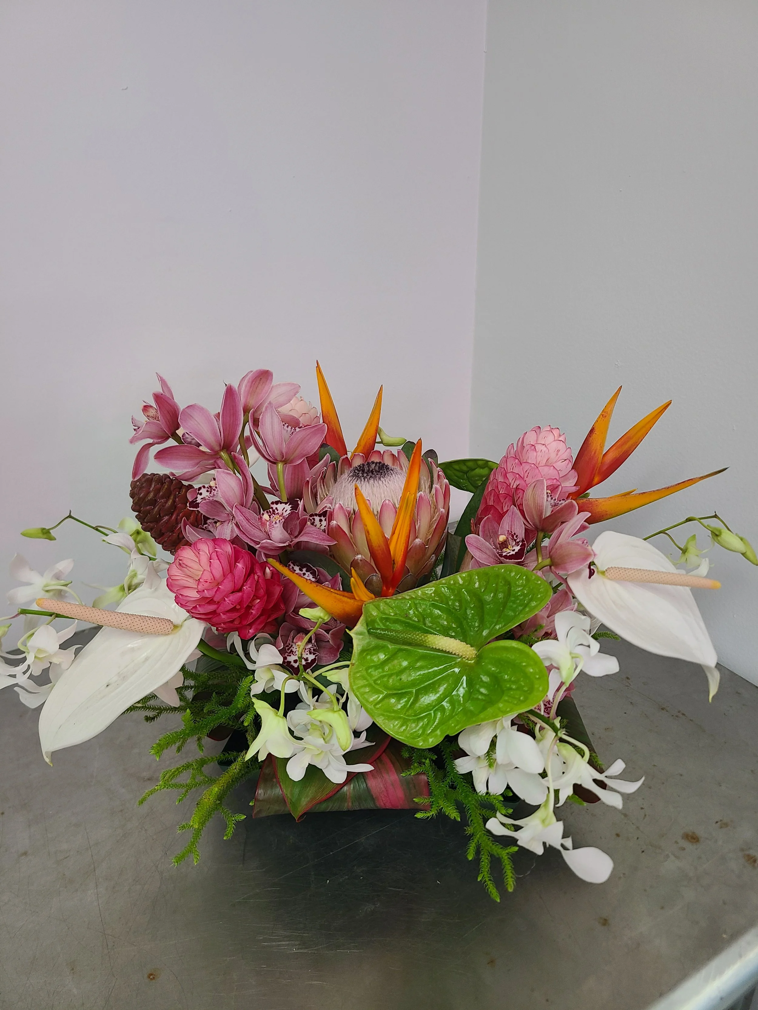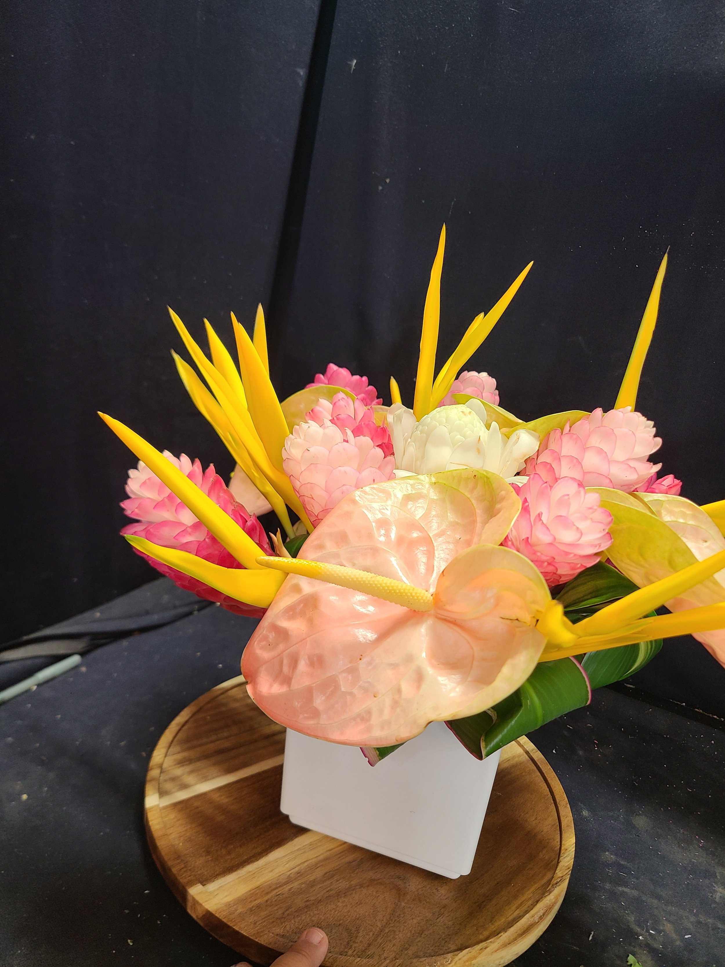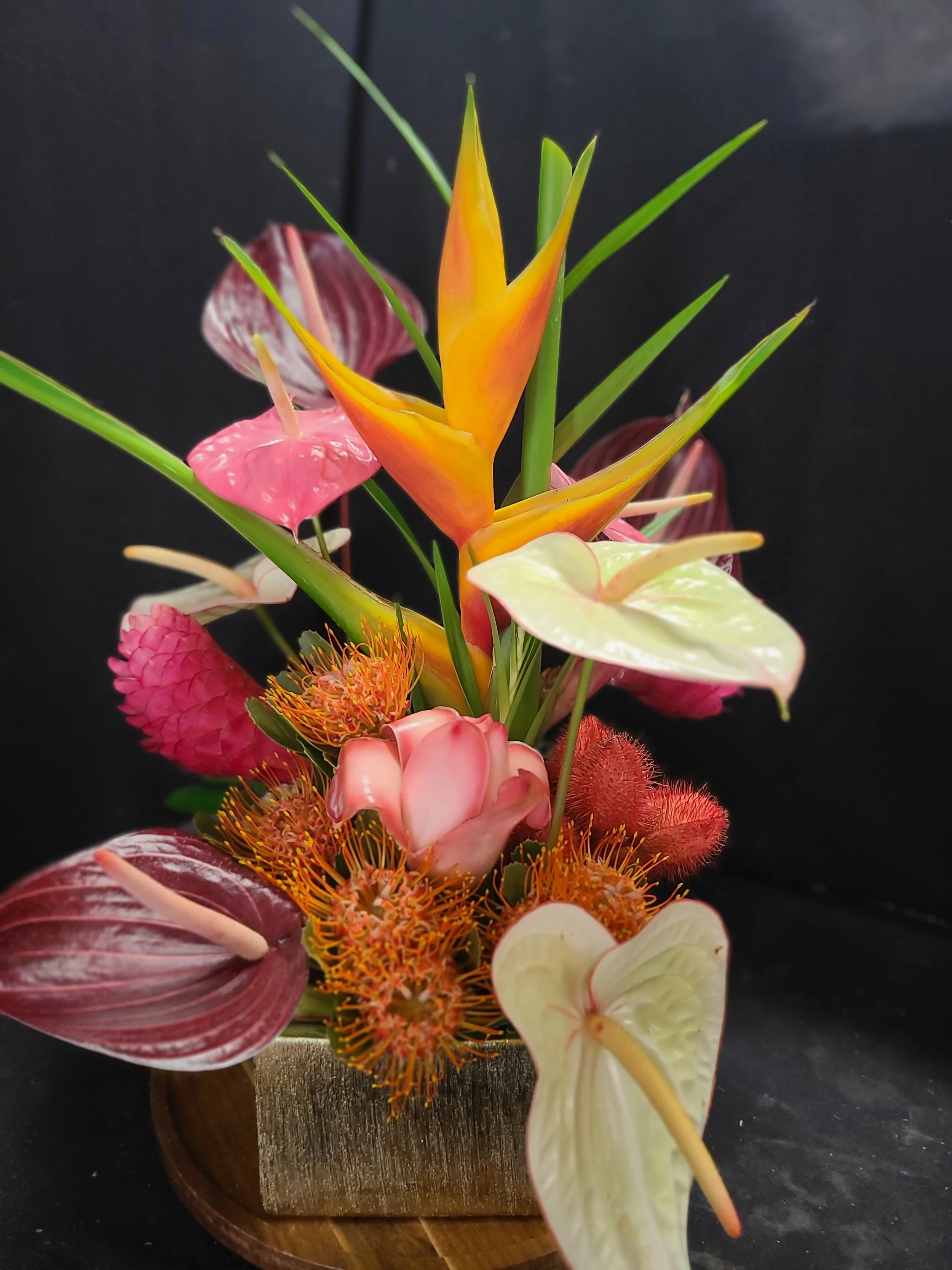 Our tropical arrangements highlight bold textures and vibrant blooms, designed to feel both elevated and effortless. Using what’s freshest and most beautiful in the shop, each piece is thoughtfully composed to celebrate the natural movement and drama of tropical florals.
